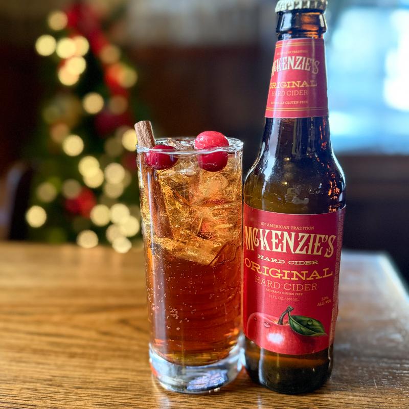 Captain Morgan Rum, Amaretto, maple syrup, and Angostura Bitters. Topped with McKenzie’s Original Hard Cider. Served with a cinnamon stick.